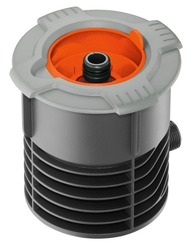 Met het GARDENA Aansluitgarnituur kunt u de kraan aansluiten op het ondergrondse GARDENA Sprinklersystem of de GARDENA Pipeline. Er wordt een GARDENA ‘Profi’ Maxi-Flow System Kraanstuk (art. nr. 2713-20) meegeleverd. Als er een beregeningsventiel of waterstopcontact wordt aangesloten, staat de slangaansluiting continu onder druk; in dat geval moet de druk in de slangaansluiting worden gestabiliseerd met het Kraanaansluitstuk (art. nr. 1513-20). De opklapbare, bolvormige afdekking verdwijnt bij opening binnenin het aansluitgarnituur en vormt dus geen probleem bij grasmaaien. Door de brede rand kan er geen gras in de afdekking groeien. Een uitneembaar filter voorkomt vervuiling van het contact als de afdekking open is. Het GARDENA Aansluitgarnituur heeft een buitendraad van 3/4″.