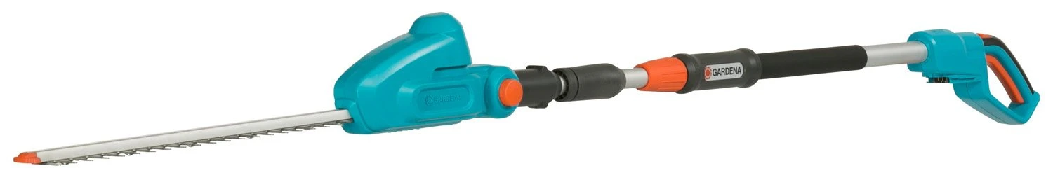 Met de GARDENA accu-telescopische heggenschaar kunnen zelfs drie meter hoge heggen moeiteloos worden gesnoeid. U hoeft geen aandacht te besteden aan stroomkabels en heeft geen ladder nodig, want u kunt altijd met beide voeten op een vaste ondergrond staan.
